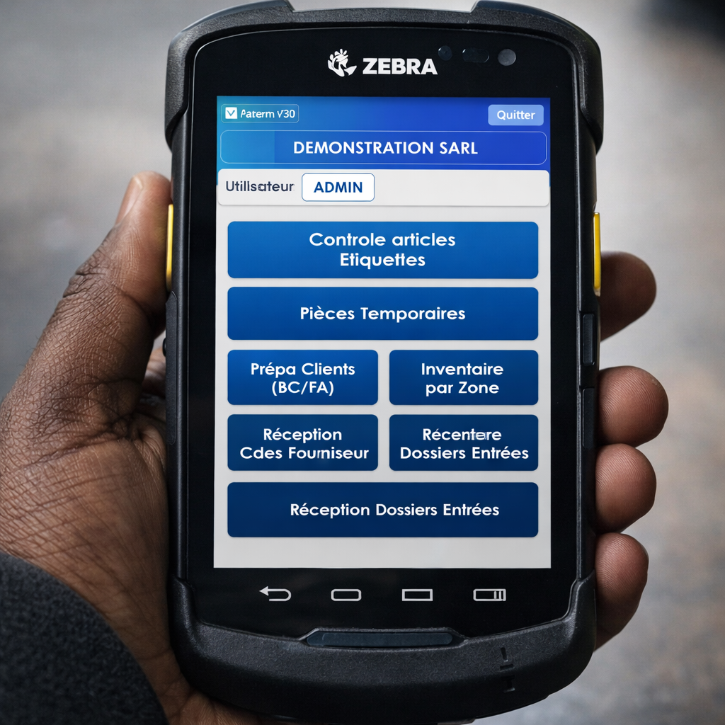 - Terminaux (ex : Zebra) reliés au serveur en Wi-Fi en configuration "Terminal Server".