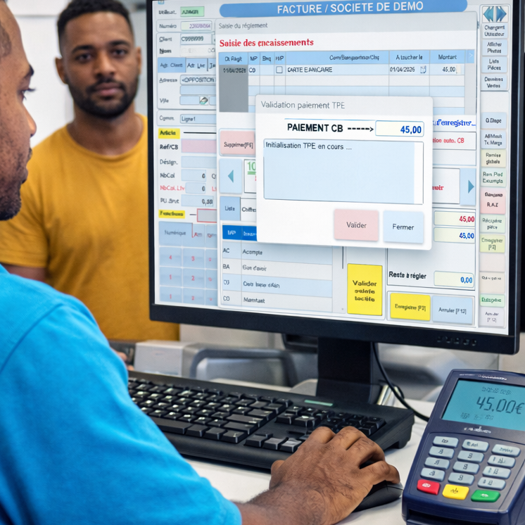 - Communication entre iGestion et le TPE pour les montants cartes bancaires et chèques.