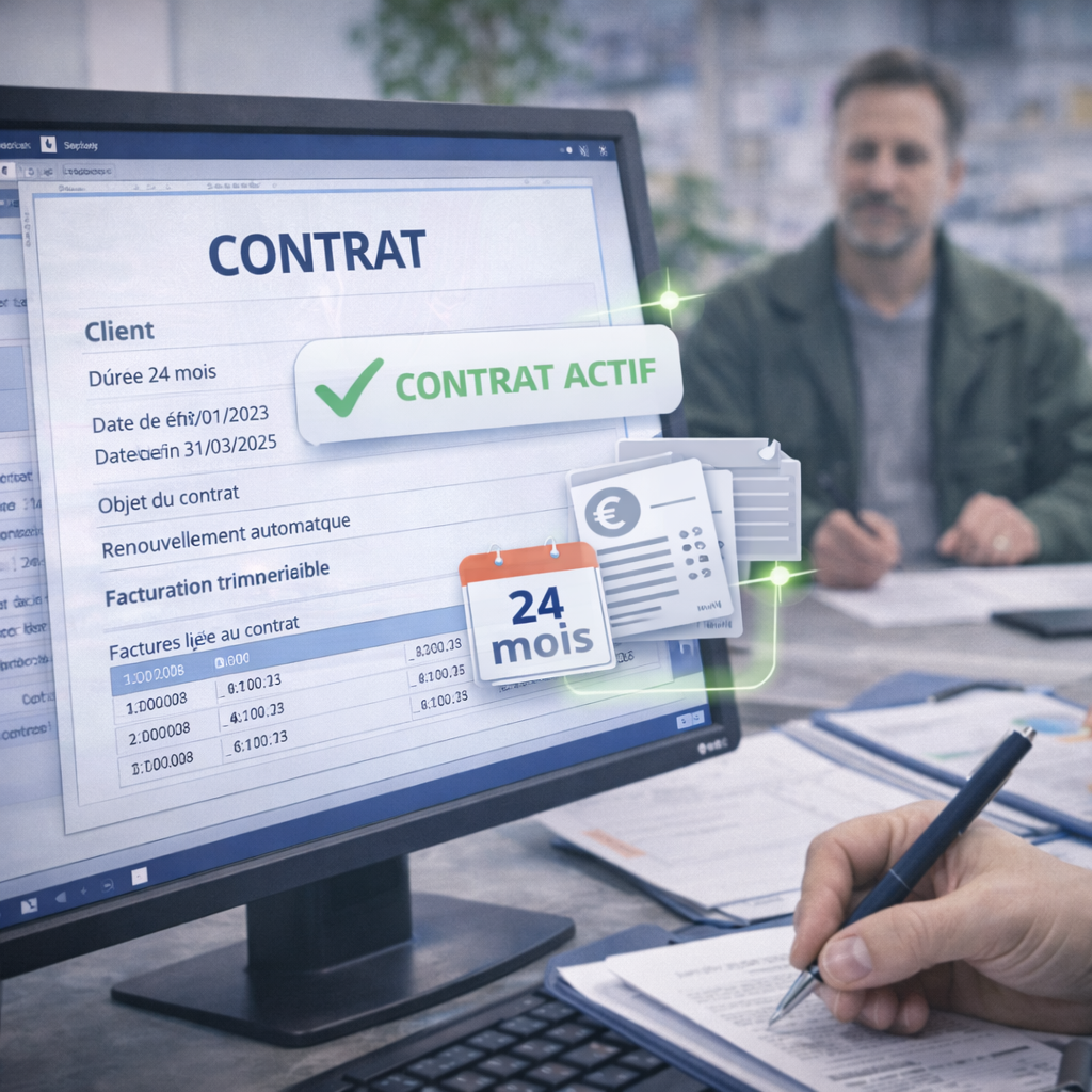 - Contrats paramétrables, avec périodicité et détails des prestations.